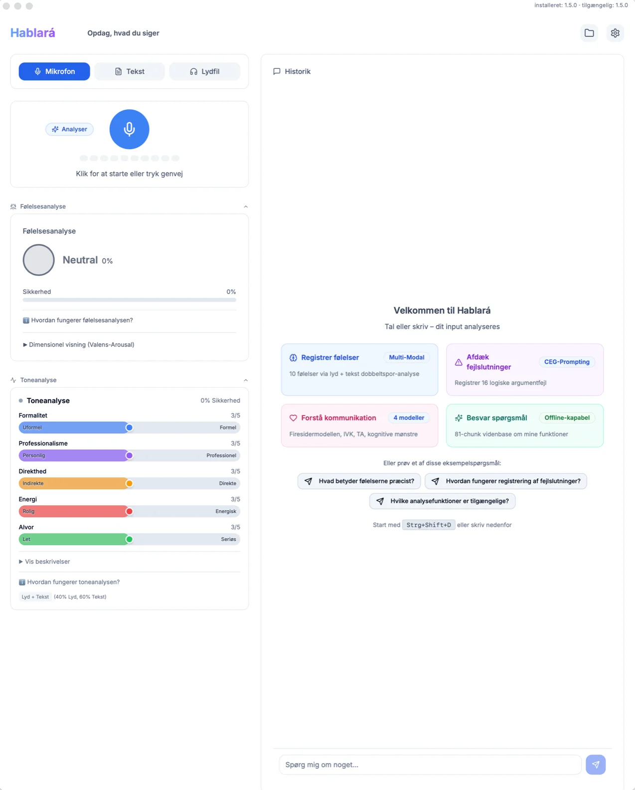 Hablará desktop-appen indsamler INGEN brugerdata.