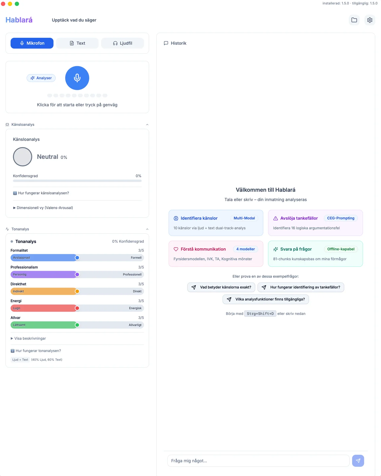 Hablará:s källkod är tillgänglig för granskning på GitHub (Source-Available-licens — användning/modifiering utan tillstånd är inte tillåten). Interaktioner med förrådet är föremål för GitHubs integritetspolicy.